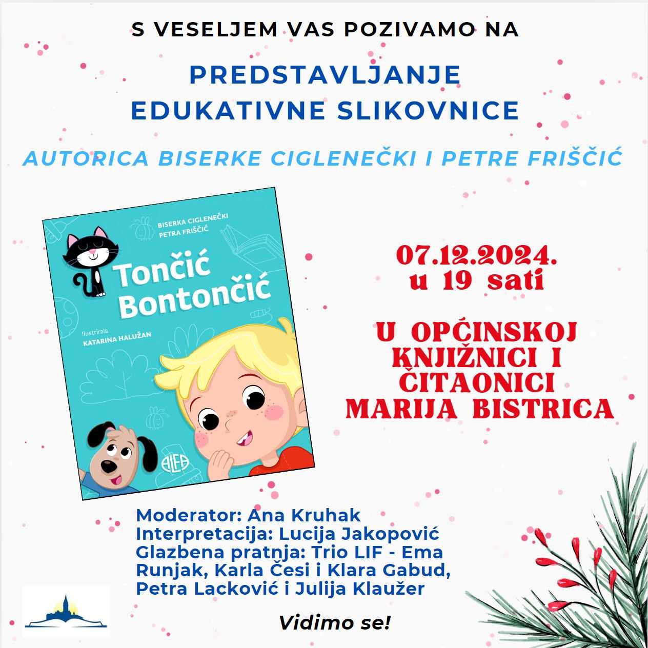 Tončić Bontončić je edukativna slikovnica koju mogu koristiti roditelji, bake i djedovi, odgajateljice, učiteljice, edukacijski rehabilitatori, psiholozi, pedagozi, knjižničari, zapravo svi koji rade s djecom.